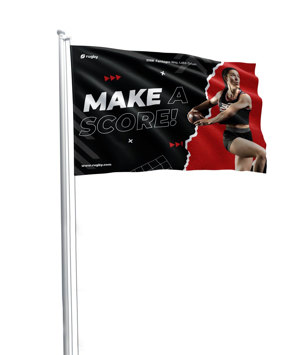 Our custom pole flags can transform your logo or artwork into a dynamic flying reality. Flags are printed with high quality eco-safe inks through our dye sublimation process.